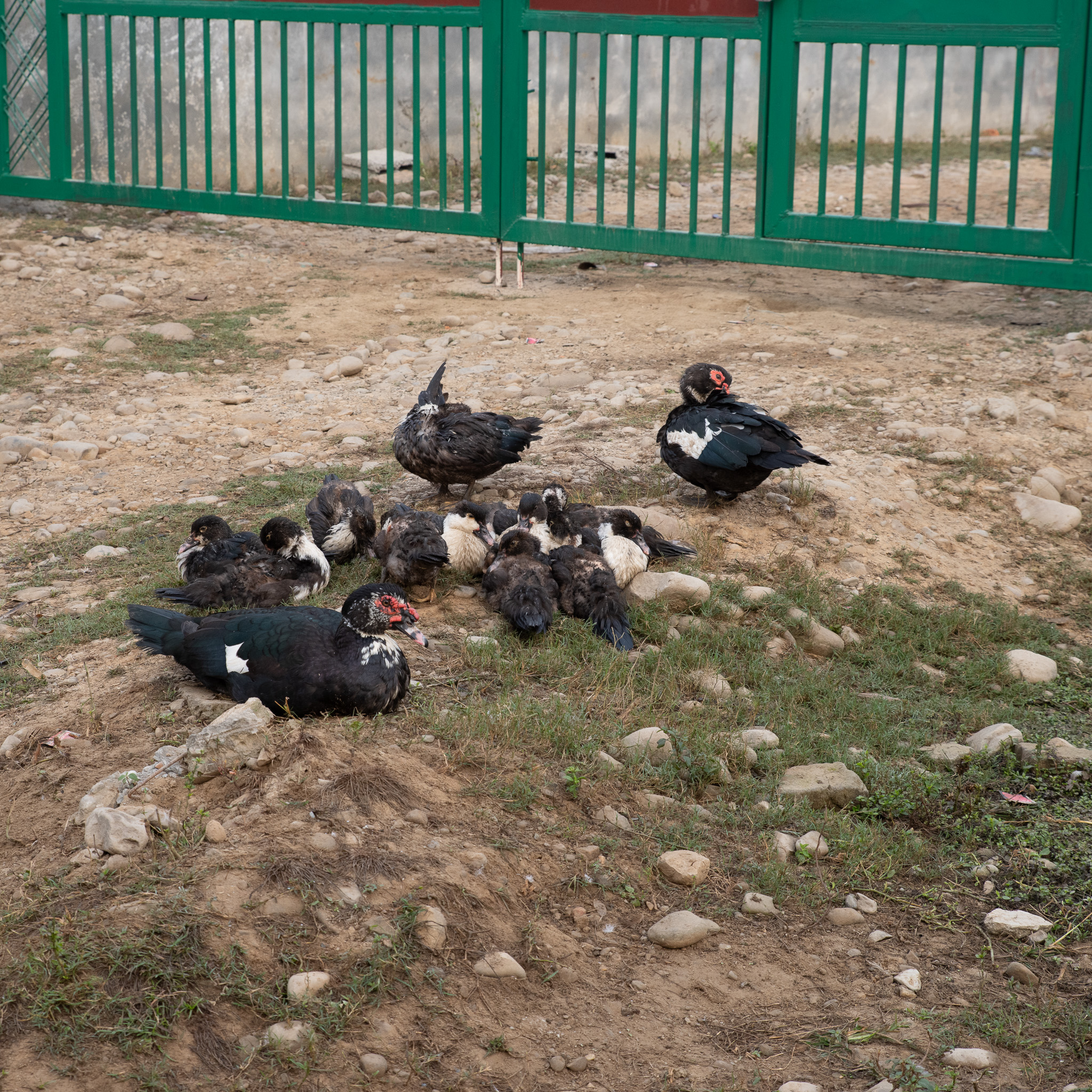 地面で身を寄せ合うノバリケンの一家に目が留まりました。顔周りの赤い肉瘤が特徴的な彼らは、アヒルよりもがっしりとした体格で、どこかたくましさを感じさせます。村のあちこちで見かけるこの鳥は、高タンパクで低脂肪な食材としてもこの地で大切にされています。のんびりと羽を休める親子の姿は、人々の暮らしに溶け込み、豊かな生命力に溢れていました。何気ない景色の中に、この国ならではの「日常」が凝縮されているような、穏やかなひとときです。