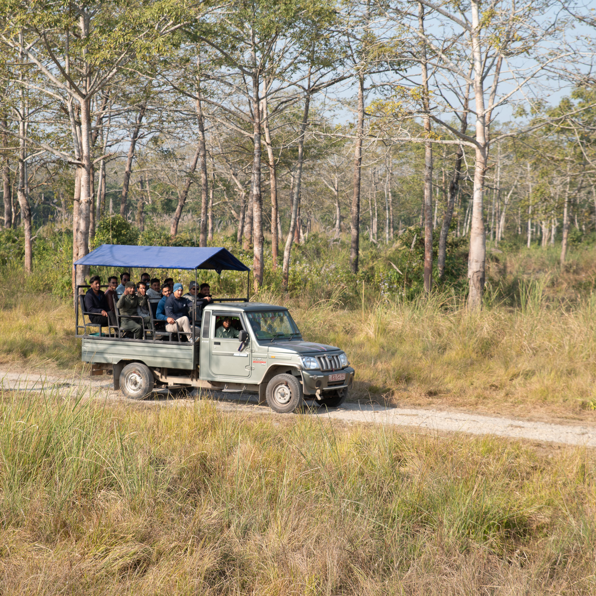 ジャングルの中をグワングワン揺られながら進むと途中でジープサファリの人たちを目撃することに。