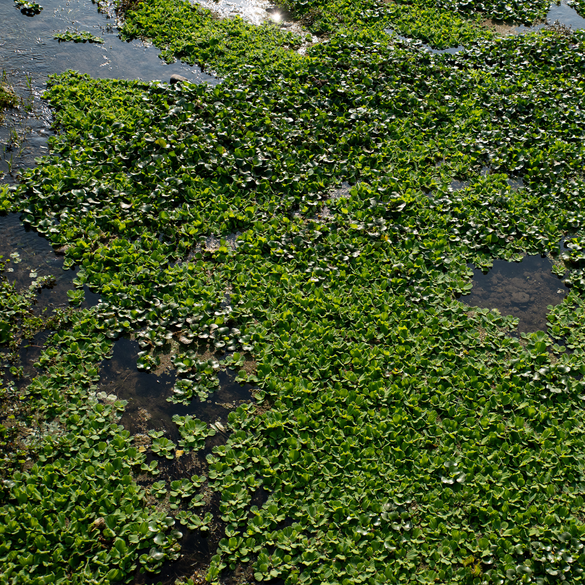 二種類のホテイアオイの仲間が浮かぶ川を渡り、ワニがいる川をザブザブとこぎながら進んでいきます。