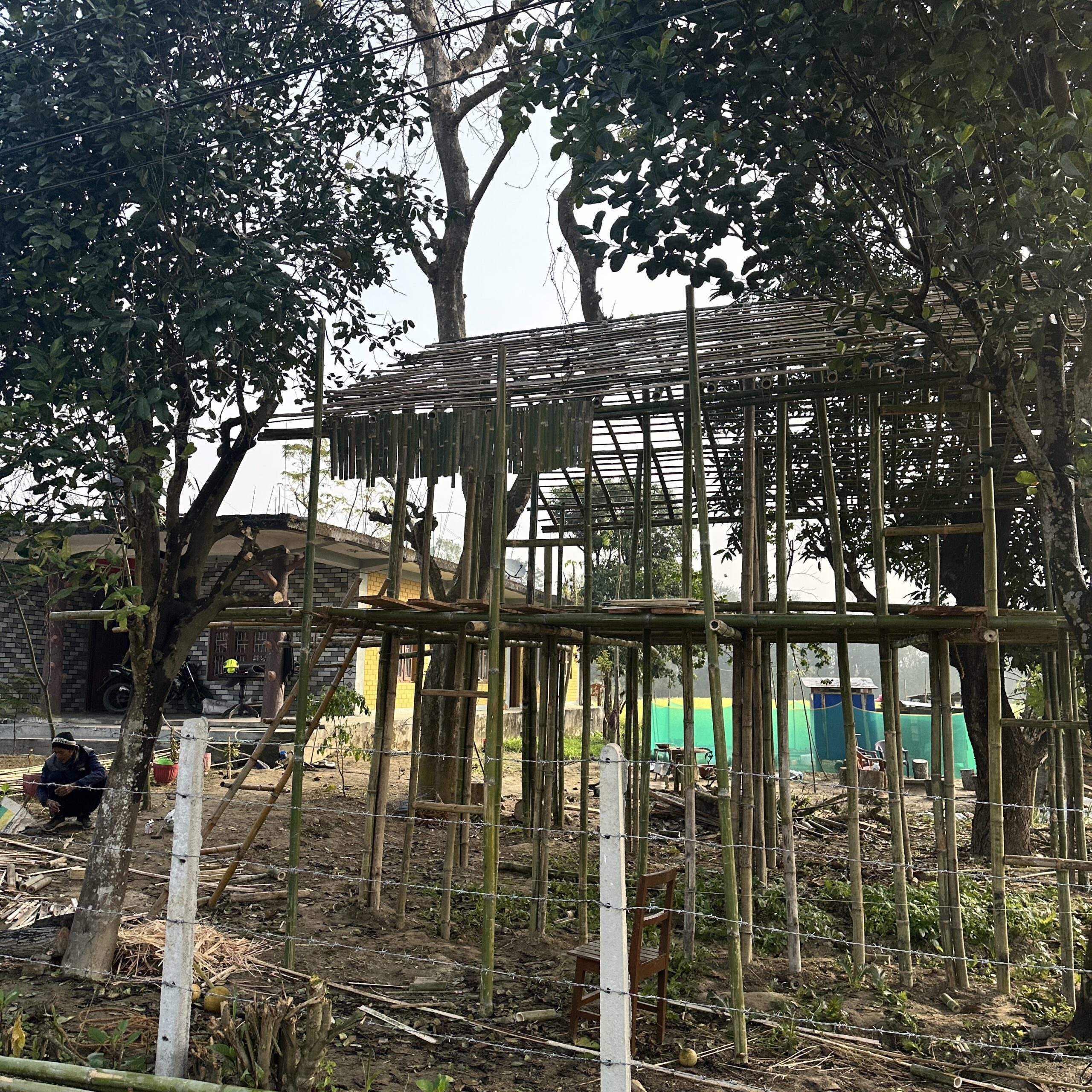 タケを上手く使った工事現場では女性もガンガン働いています。タケは本当に上手く使われています。