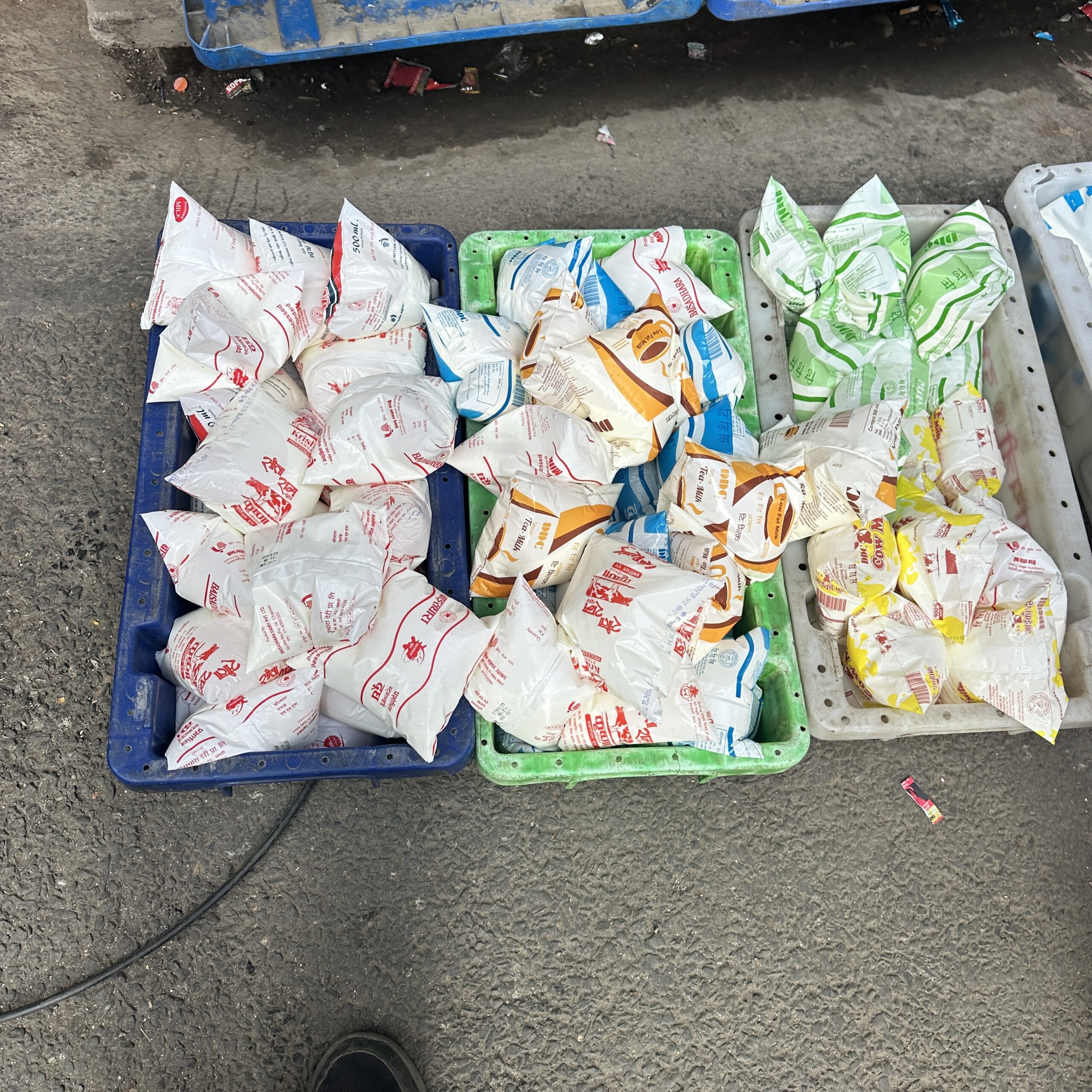 牛乳はプラスチックバック入り。冷たいまま飲むという事はきっとないのでしょうからこんな感じでも良いのですが。パッケージを良く見てみると、TeaMilkとかLowFatとか各種あるんですね。価格を把握できるのは、500mLでRp50。安い・・・LowFatがあるということはしっかりバターも作られてるって感じですもんね。大丈夫かね・・・日本。