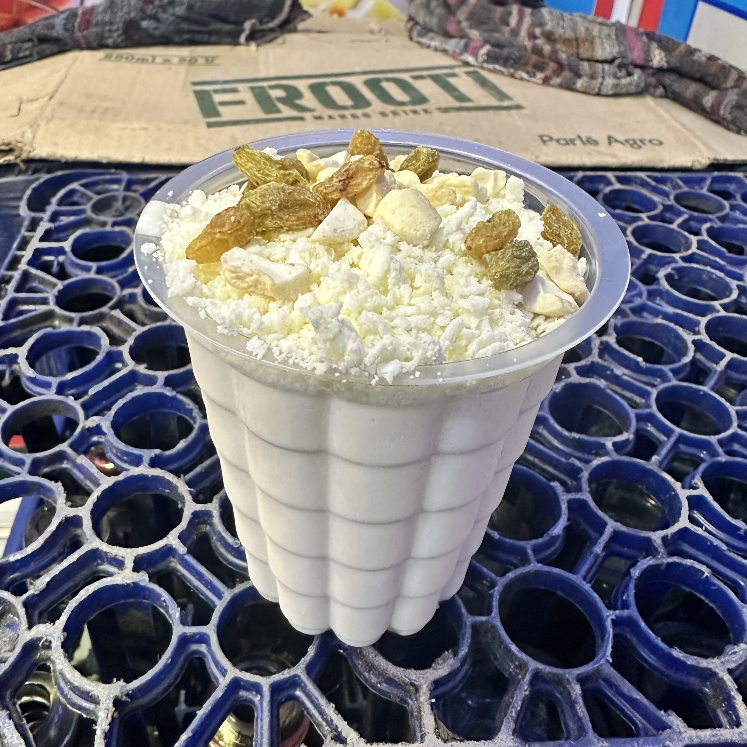でやっと見つけたミトラッシー。Rp150。美味しい・・・でも昨日のところの方がずっと美味しいです。舞台裏がわかってしまいましたが、大量のラッシーを冷凍庫に凍らせて保管してあり、それを切り崩して融かしてカップに入れるんです。カップも昨日の店はガラスのリユース可能な物でしたが、ミトラッシーはプラカップ。少なくなったときのキレが非常に悪くて割と残ります。ストローもありませんからなんか残念・・・。上に置かれているナッツ類も食べられないんだもの。