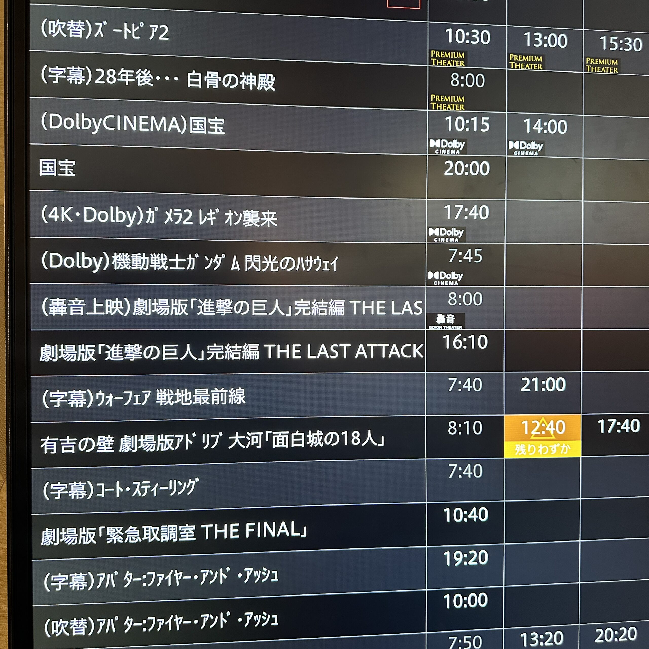 今回のこの映画はDolby一択だって言われていたのですが、土曜日が勤務日だらけでちょっと我慢。