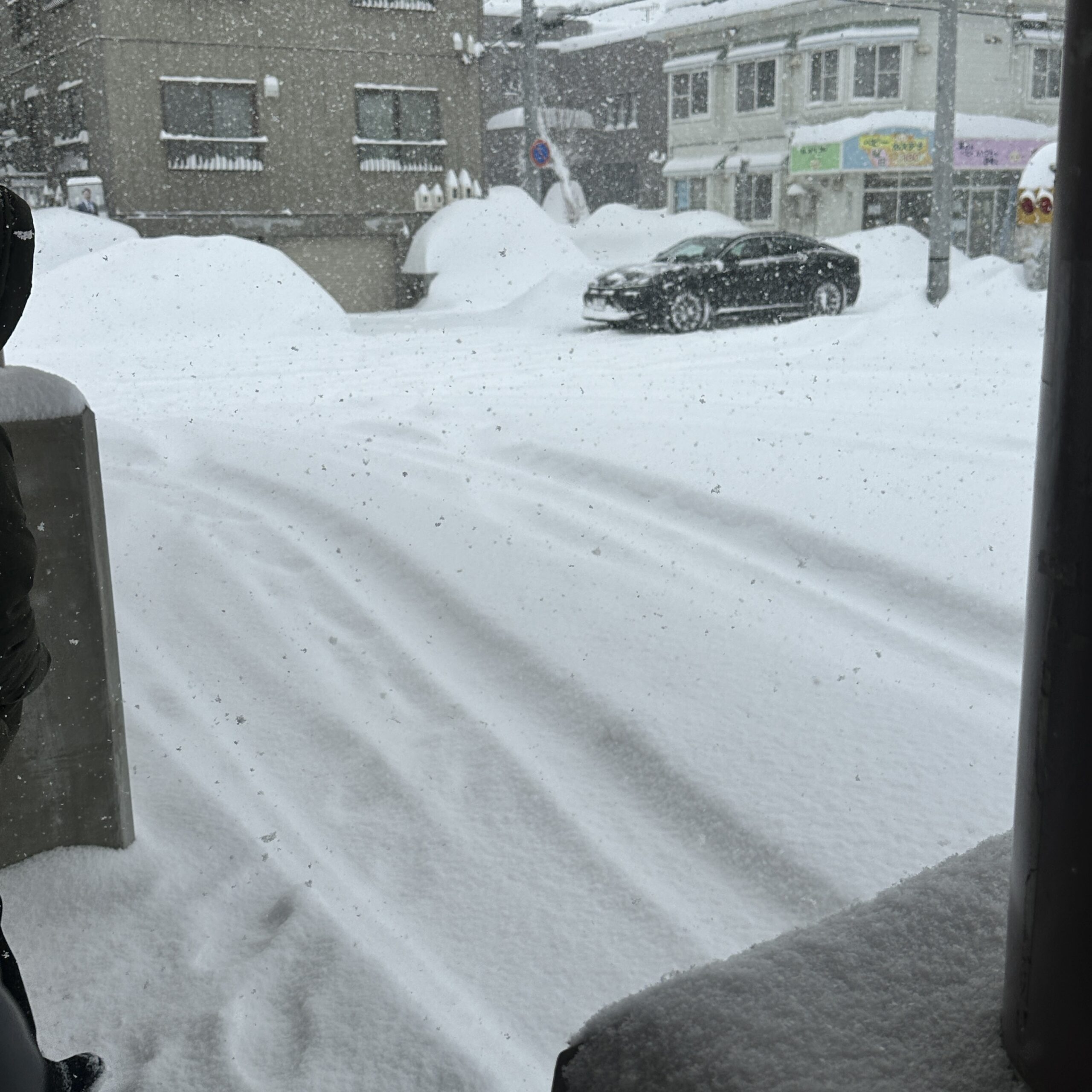 それを見た関係か、今まで行ったことがなかったこのカステラの店をのぞきに行ったのです。徒歩普通であれば30秒くらいなのですが、とんでもない積雪で倍以上かかったと思います。積雪、下が凍結、無理して進んだ車の轍、除雪未実施。これは本当にいやな予感です。