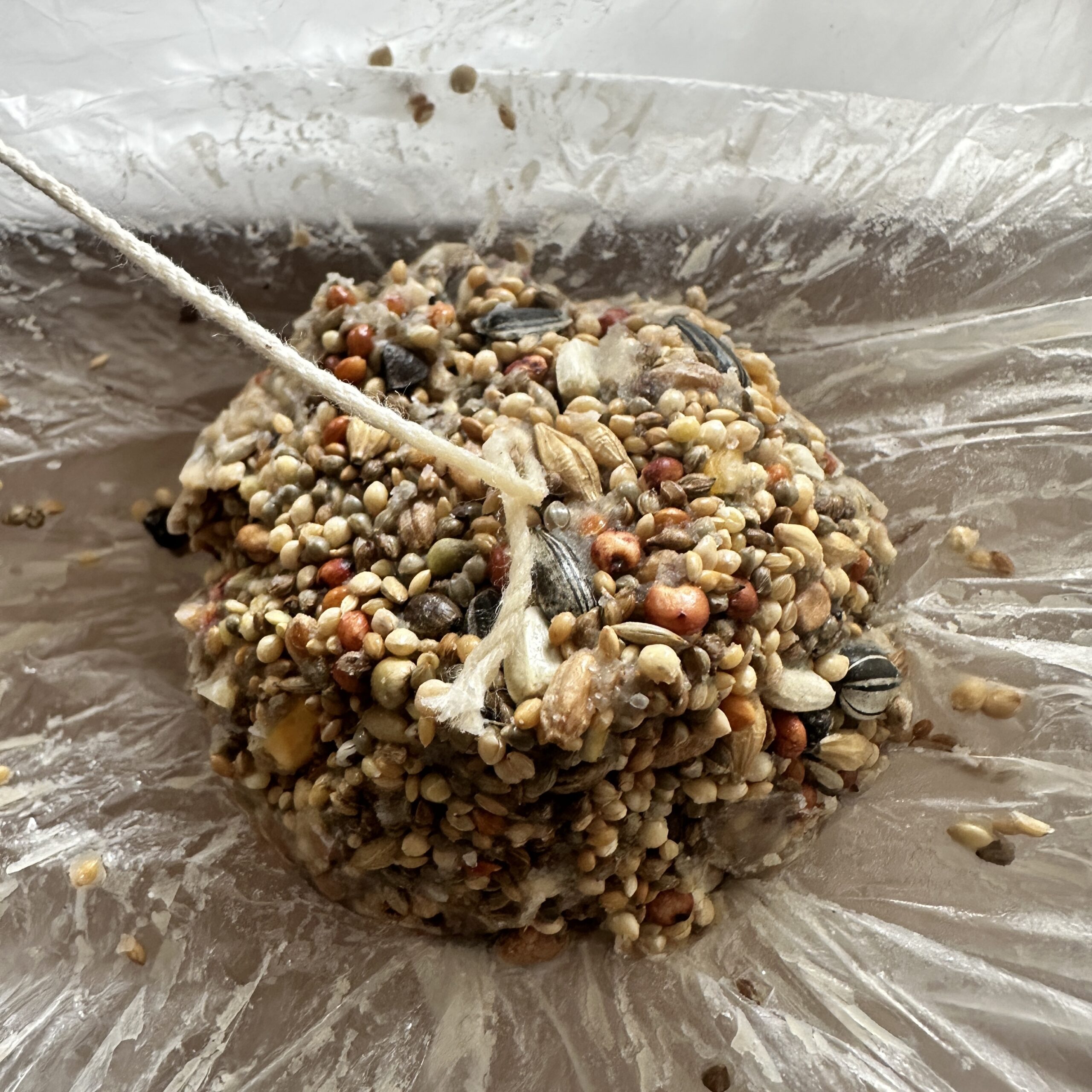 さて、全て回収したのですが、味を占めたヒヨドリたちが毎日のようにきますので、しょうがないのでバードケーキをつくって設置することにしました。