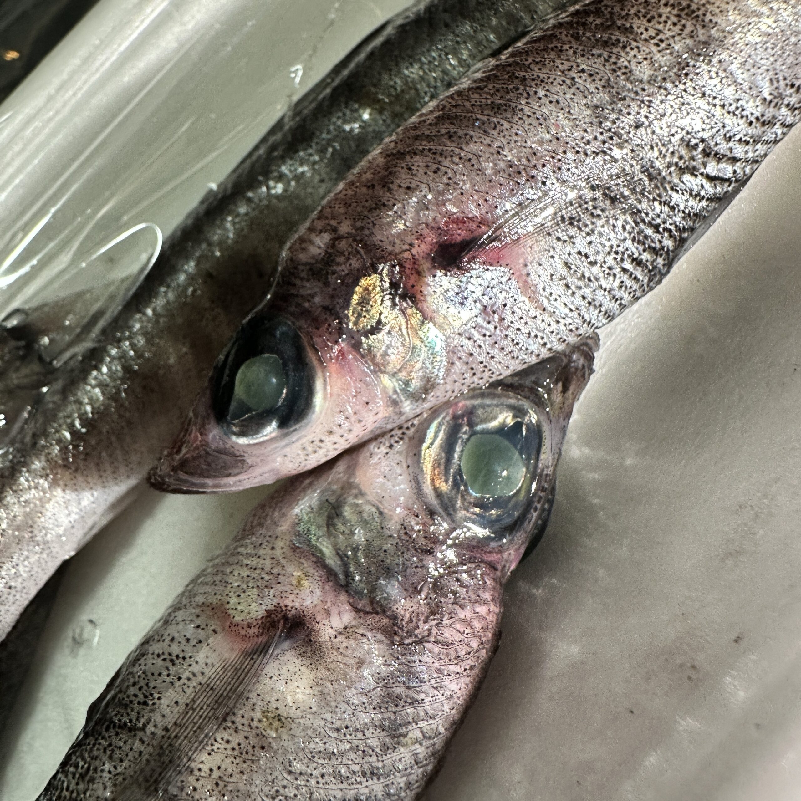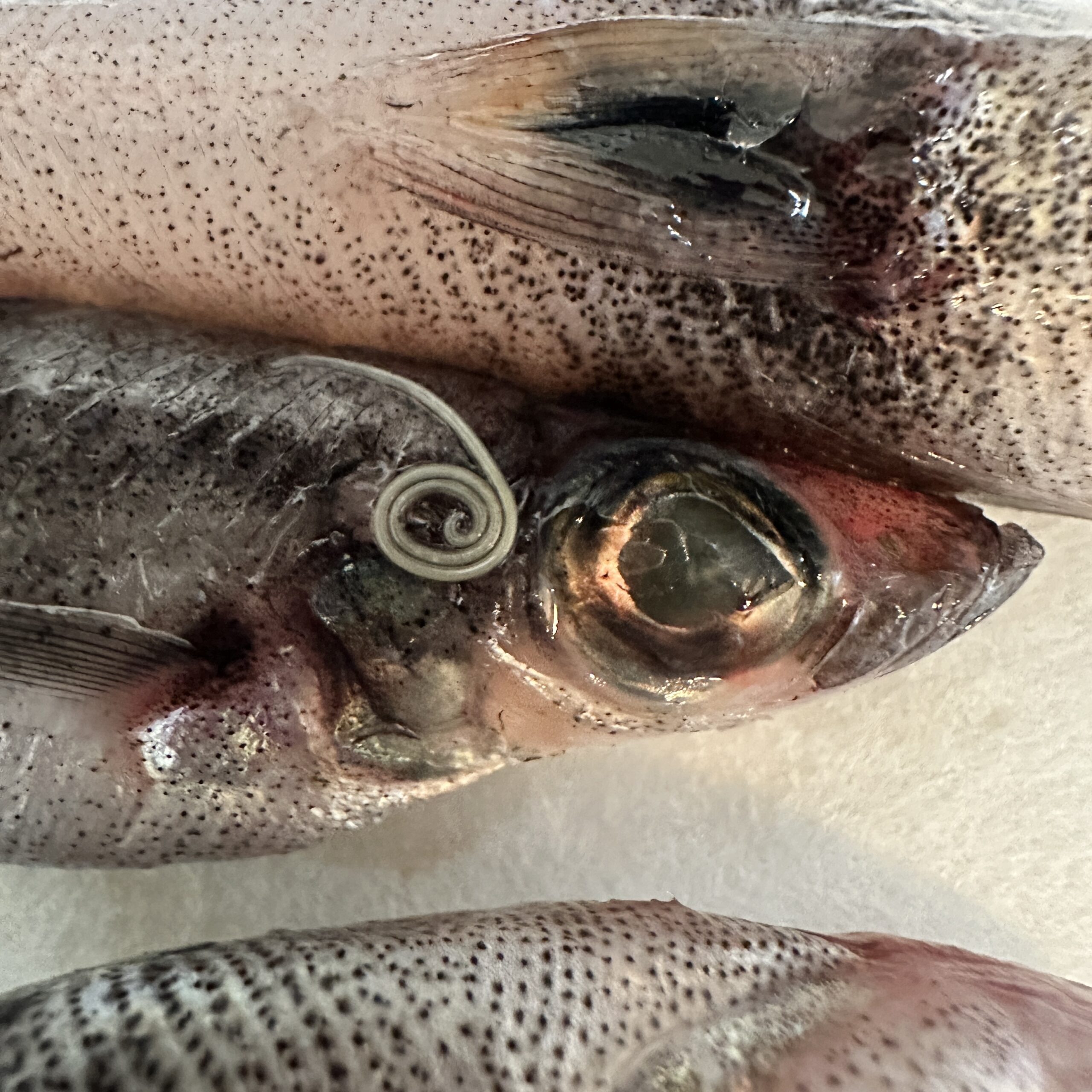 下処理をしようと一匹ずつ見ていくと、いた・・・見える。目をこらすと、アニサキス。