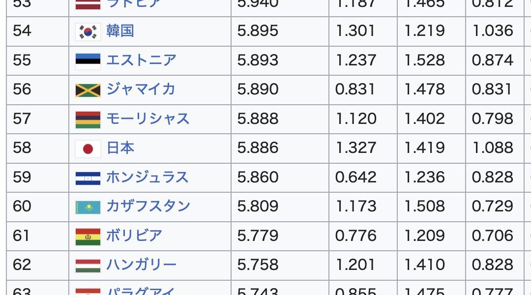 幸福度ランキングというと、つい「なぜ北欧は高いのか」「なぜ日本は低めなのか」みたいな話になりがちですよね。